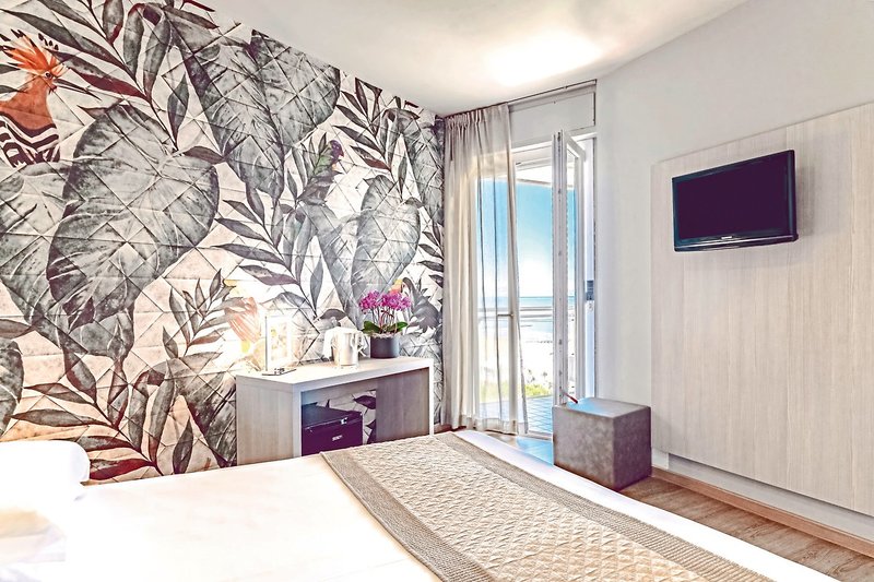 - 10-15 qm, Doppel, Meerblick (seitlich), Dusche, WC, Haartrockner, Klimaanlage, ca. 15.5.-15.9., Heizung, Minibar kostenpflichtig, Safe, TV (Sat-TV), Balkon