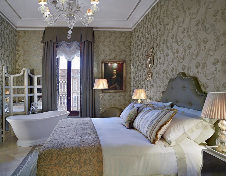 Izby: Každá zo 61 izieb a 21 apartmánov je zariadená exkluzívnymi benátskymi starožitnosťami a vyžaruje elegantné starosvetské čaro a zároveň ponúka najmodernejšie vybavenie. Všetky izby sú jedinečne a individuálne zariadené a majú vaňu a/alebo sprchovací kút, župan, sušič vlasov, satelitnú TV, telefón, Wi-Fi (bezplatné vo vstupnej hale), minibar, trezor a klimatizáciu.