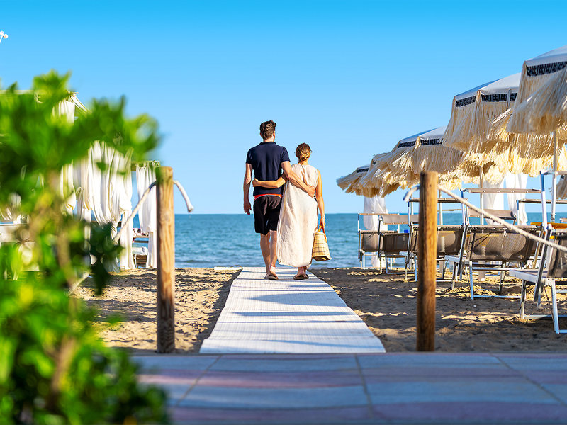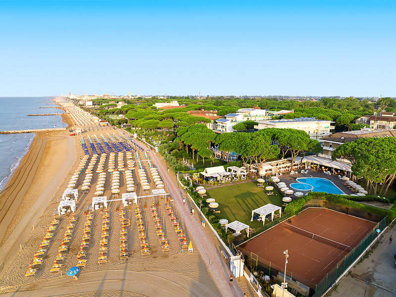 Lage: Direkt am Meer, in der ruhigen Pineta-Zone von Jesolo. Privater Strand vor dem Hotel. Ca. 6 km vom Zentrum von Jesolo entfernt, Venedig in ca. 1 Stunde erreichbar.