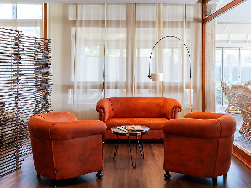 Ausstattung: Rezeption, WLAN (inklusive), Restaurant mit Panoramablick und Show Cooking, Bar. Garten, 2 Pools (Erwachsene mit Sprungbrett, Kinderpool), Sonnenterrasse. privater Parkplatz (inklusive, nach Verfügbarkeit), 2 Ladestationen für Elektroautos. Landeskategorie: 4,5 Sterne, 50 Zimmer.