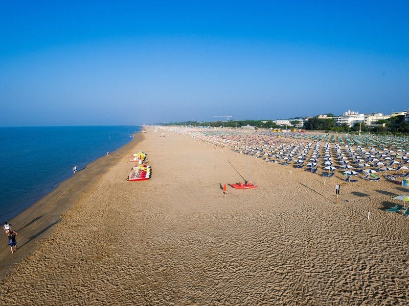 - Strand „Bibione Spiaggia“: Sand, flach abfallend, naturbelassen, öffentlich, Liegestühle: ohne Gebühr, Sonnenschirme: ohne Gebühr