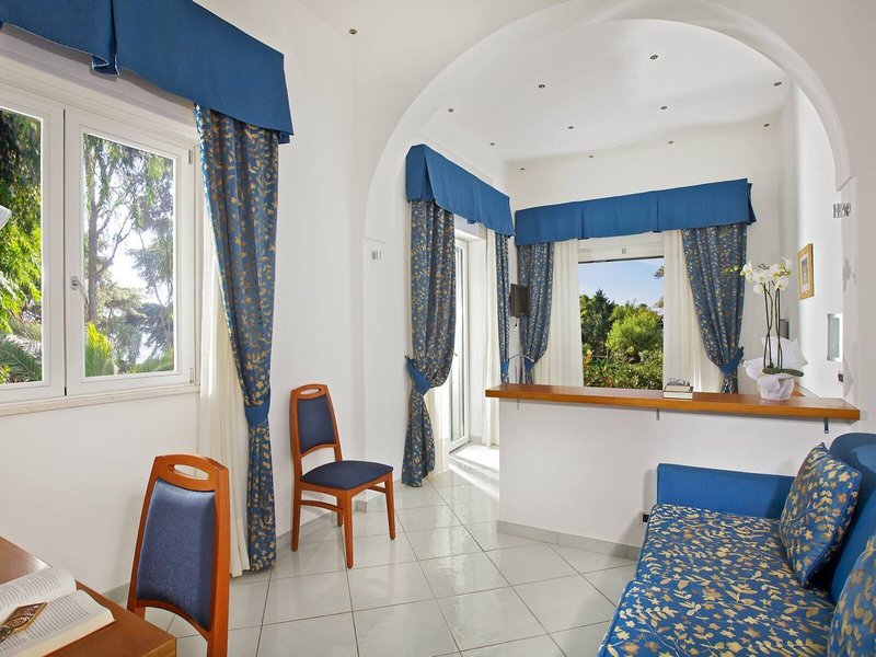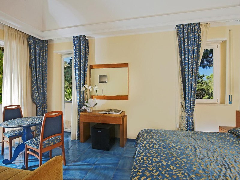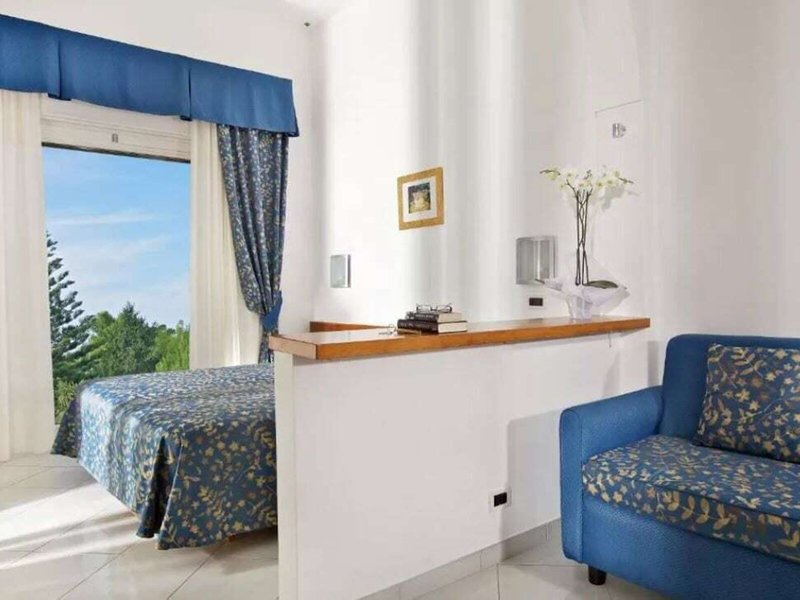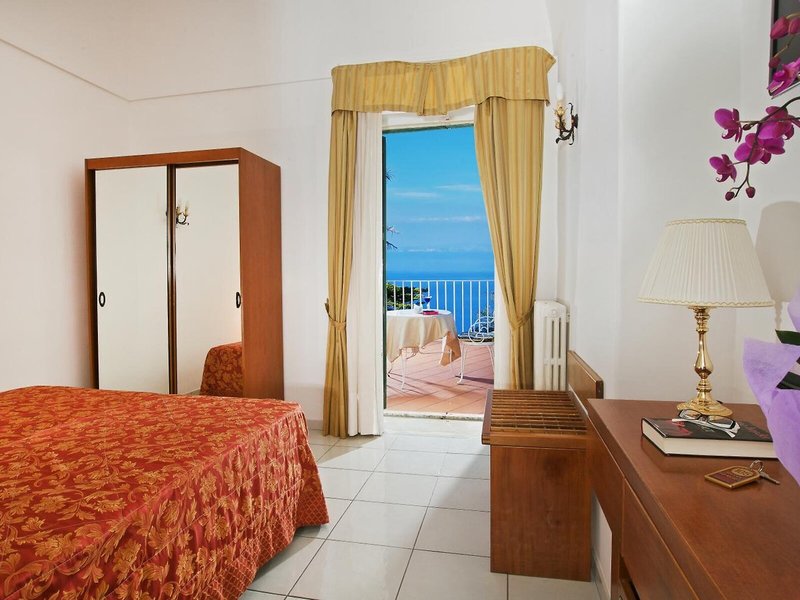 Poloha a okolie Tento atraktívny hotel sa nachádza vo veľkej záhrade s úchvatným výhľadom na ostrov, Neapolský záliv, polostrov Sorrento a pobrežie Amalfi. Je blízko centra Anacapri a blízko sedačkovej lanovky, ktorá vás vyvezie na najvyšší bod ostrova, Monte Solaro. Je tiež len kúsok od slávnej vily San Michele Axela Muntheho. V bezprostrednej blízkosti (cca 5 minút chôdze) nájdete centrum mesta s rôznymi nákupnými možnosťami, početnými reštauráciami, rôznymi barmi a rozsiahlymi zábavnými podnikmi. V bezprostrednej blízkosti (cca 5 minút pešo) sa nachádza zastávka MHD a autobusová zastávka. Z terasy máte očarujúci výhľad na prístav Capri. Je to asi 2 km od príjemnej pláže, z ktorých niektoré sú prístupné po schodoch. Capri (Piazzetta) je asi 3 km od hotela.