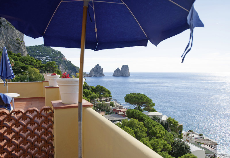 Panoramalage mit herrlichem Blick auf die Faraglioni Felsen und das Meer