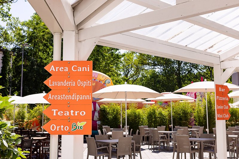 - Reštaurácia, všetky jedlá formou bufetu, all inclusive: voda 24 hodín denne, domáce víno, pivo a nealkoholické nápoje zo samoobslužného automatu v cene, aperitív s alkoholickými a nealkoholickými nápojmi pred každým obedom a večerou, čerstvo plnená piadina každé popoludnie od 15:30 do 18:00, zmrzlinový stánok s domácou zmrzlinou na 1 hodinu popoludní, koktailový čas od 20:00 do polnoci s rumom s kolou, ginom s tonikom, vodkou s tonikom a sangriou (iba pre dospelých).