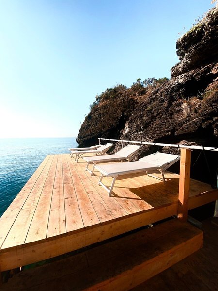 - Strand: felsig, Badeplateau, Liegestühle: ohne Gebühr, Sonnenschirme: ohne Gebühr