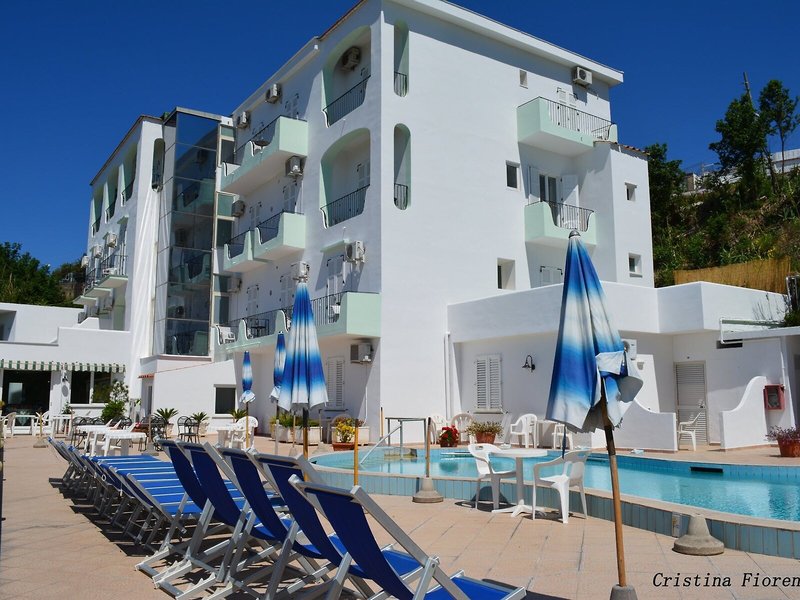 Poloha a okolie Hotel ponúka hosťom ideálne ubytovanie pre ich dovolenku na Ischii. Nachádza sa na južnom pobreží ostrova, v blízkosti slávnej pláže Maronti a neďaleko veľkej pláže v Citare s wellness záhradami Poseidon. Malebná zátoka Sorgeto s horúcimi prameňmi je tiež rýchlo dostupná. Centrum mesta Forio d'Ischia, pláž Sant'Angelo a záliv Sant'Angelo sú vzdialené približne 10 minút jazdy autom. Do historického centra mesta Ischia Ponte a do prístavu Ischia sa autom dostanete približne za 25 minút. Najbližšie letisko je od hotela vzdialené približne 30 km.