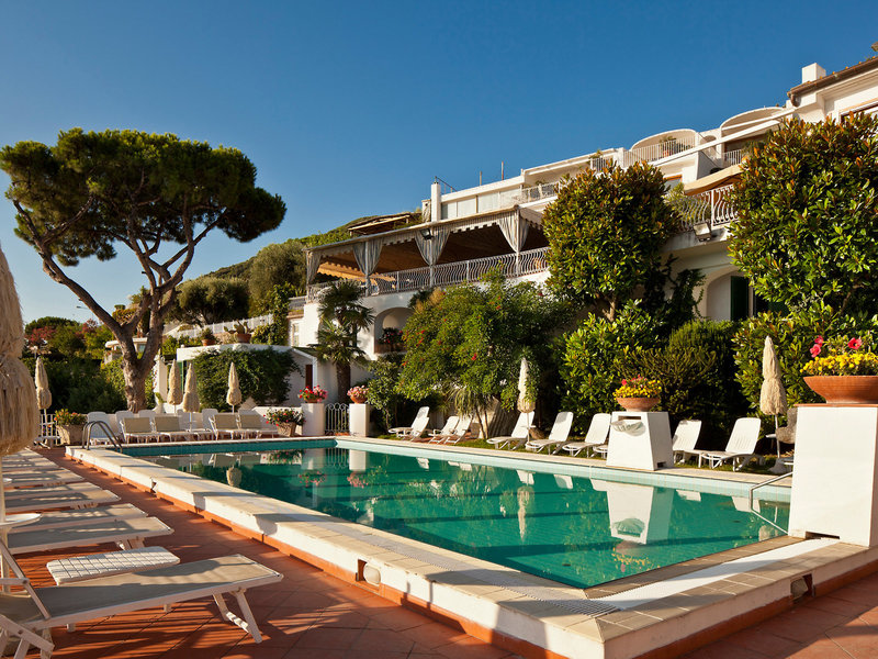 Lage & Umgebung Das Hotel ist ca. 14 Gehminuten über ca. 200 Treppenstufen vom hoteleigenen Strand und nur ca. 10 Gehminuten vom Zentrum von Ischia entfernt. Fähren nach Capri und Sorrent legen vom ca. 15 Gehminuten entfernten Hafen von Banchina Lauro Agostino ab. Der nächste Flughafen ist Neapel und in ca. 120 Fahrminuten zu erreichen.