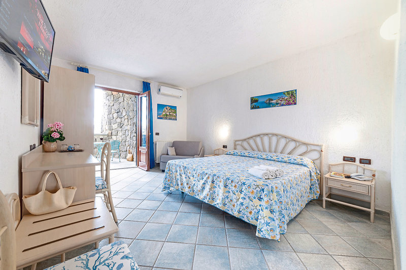- 16-20 m², dvojlôžková izba, komfortná, výhľad na more (čiastočný), sprcha, fén, klimatizácia, kúrenie, minibar (za poplatok), trezor, TV, Wi-Fi, balkón alebo terasa