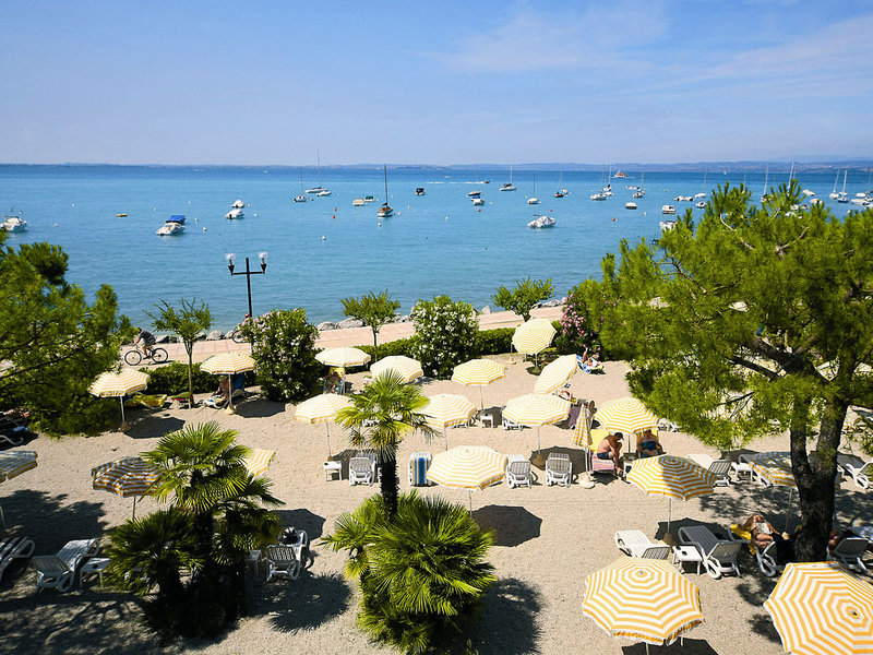 - Strand: Kies, hoteleigen, Liegen, Sonnenschirme