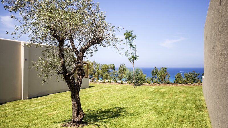 Doppelzimmer Komfort Meerblick (ca. 35m²): Doppelbett, offenes Badezimmer mit Walk-in Dusche, Klimaanlage, W-Lan, Safe, TV, Minibar (gegen Gebühr), Wasserkocher, möblierte Terrasse mit Meerblick (teilweise eingeschränkt durch Vegetation). Auch als Doppelzimmer zur Alleinbenutzung buchbar.