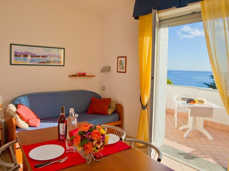 - 2-izbový apartmán s výhľadom na more 1-4 osoby (APM3), apartmán, výhľad na more, obmedzený výhľad na more, cca 30 m², posledná čiastočná rekonštrukcia v roku 2015, celkový počet izieb v tomto type izby: 2, rozloženie: kombinovaná obývacia izba. /spálňa, 1 spálňa, 1 manželská posteľ, 1 rozkladací gauč, detská postieľka: cca 15 EUR/týždeň, nutná požiadavka, klimatizácia: zdarma, v závislosti od sezóny; v závislosti od počasia, kúrenie: sezónne; podľa počasia, centrálne ovládané, trezor: bez poplatku, kuchynský kút, chladnička: bez poplatku, plynový/elektrický sporák, mikrovlnná rúra, telefón, internet: WLAN/WiFi: bez poplatku, TV: satelitná TV, vaňa alebo sprcha, WC, sušič vlasov, balkón : s posedením