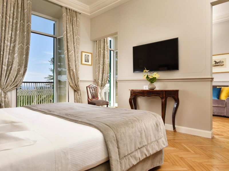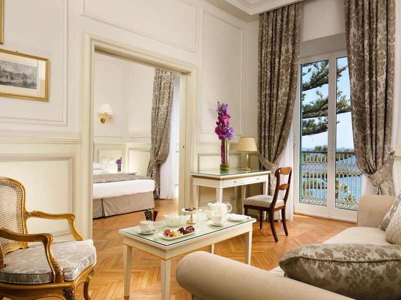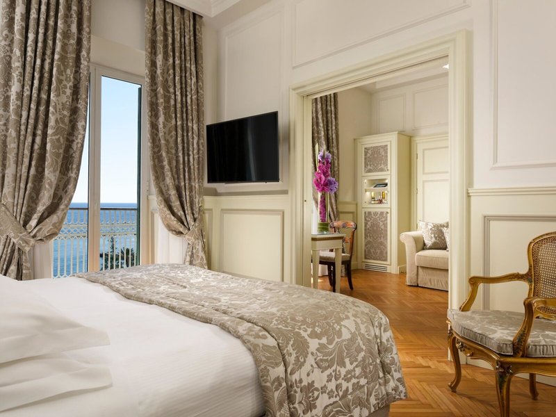 - Juniorsuite Suite Sea View (JSM1), Juniorsuite, im Hauptgebäude, Meerseite, Meerblick, ca. 35 - 42 m², Gesamtanzahl der Räume in diesem Zimmertyp: 1, Aufteilung wie folgt: kombiniertes Wohn-/Schlafzimmer, 1 Doppelbett, Babybett: ohne Gebühr, Reservierung notwendig, Klimaanlage: ohne Gebühr, Juli und August; wetterabhängig, individuell regelbar, Heizung: individuell regelbar, Fußboden: Parkett, Safe: ohne Gebühr, Sitzecke, Sofa, Schreibtisch, Minibar: gegen Gebühr, Softdrinks: gegen Gebühr, Wasser: gegen Gebühr, alkoholische Getränke: gegen Gebühr, Snacks: gegen Gebühr, Minibarauffüllung: täglich, Telefon, Internet: WLAN/WiFi: ohne Gebühr, Fernseher: Flatscreen, im Schlafzimmer, deutsches Programm, Pay-TV, Sat-TV, Roomservice: täglich 24 Stunden, gegen Gebühr, Reinigungsservice: täglich, ohne Gebühr, Tageszeitung: gegen Gebühr, Sprachen: deutsch, englisch, italienisch, französisch, separate Dusche, Badewanne, WC, Bademantel: ohne Gebühr, Slipper: ohne Gebühr, Föhn