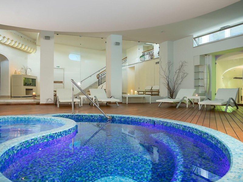 - Bazény: Detský bazén, Krytý bazén: zdarma, Vonkajší bazén, Slnečníky pri bazéne, Lehátka pri bazéne: za poplatok