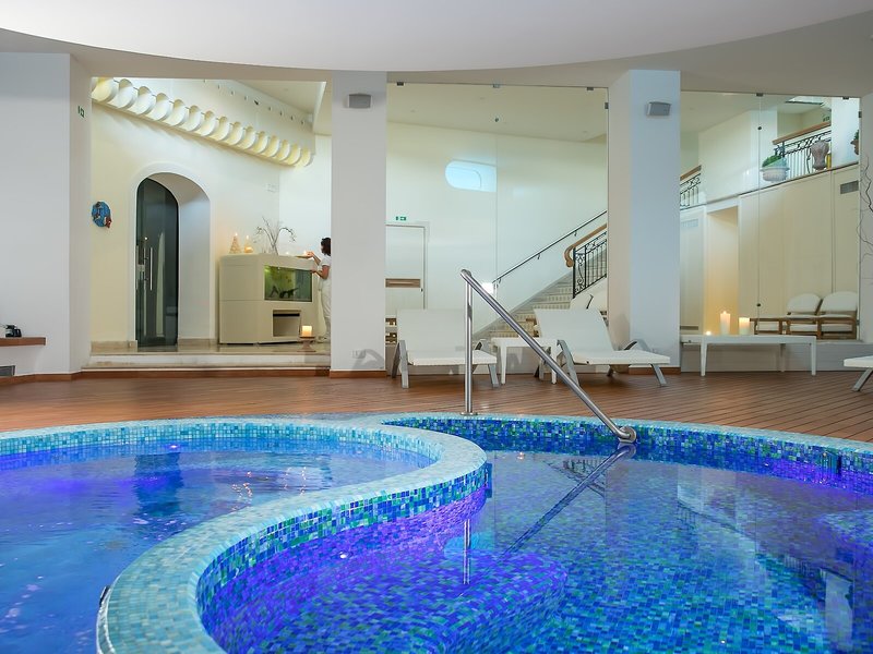 Sport & Fitness: Die Außenpoolanlage mit Kinderbereich eignet sich hervorragend für aktive Erholung und regelmäßiges Aquatraining. Erfrischende Getränke an der Pool-/Snackbar und wohlige Entspannung im Whirlpool bringen alle Wasserratten in die beste Stimmung. Auf der Sonnenterrasse mit Liegestühlen und Schirmen lässt sich der Urlaub genießen. Wer auch auf Reisen nicht auf Sport verzichten möchte, dem bietet die Unterbringung Radfahren/Mountainbiking. Fitnessstudio, Gymnastik und Aerobic sind Teil des Sport- und Freizeitangebots des Hotels. Das Haus verfügt über einen Wellnessbereich mit einem Spa, einer Sauna, einem Dampfbad, einem Hammam, einem Schönheitssalon, Hydrotherapie-Anwendungen und einem Solarium. Kostenpflichtig: Massage-Anwendungen. Ein Animationsprogramm und Live-Musik runden das Angebot ab.