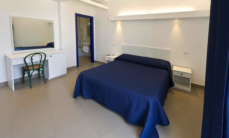 Doppelzimmer: Die freundlich eingerichteten Zimmer verfügen über Bad oder Dusche, WC, Telefon Sat.-TV, Klimaanlage (Juni-September), Wi-Fi gegen Gebühr, kleiner Kühlschrank auf Anfrage gegen Gebühr. Diese Zimmer haben keinen Balkon und keine Terrasse. Auf Anfrage auch zur Alleinnutzung buchbar (die Zimmer sind kleiner und haben ei Einzelbett). (Belegung: Erwachsene mind. 2 bis max. 2+Kinder bis max. 2)