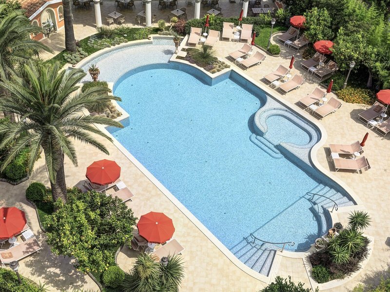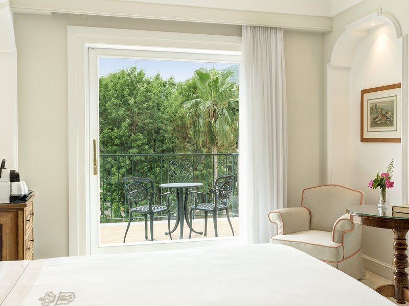 Lage & Umgebung Dieses elegante und raffinierte Hotel der gehobenen Kategorie liegt im Herzen von Sorrent. Es thront über dem Meer auf einer Klippe und überblickt den Golf von Neapel und den Vesuv. Es liegt innerhalb eines großen, alten Parks mit einer Mischung aus exotischen Pflanzen, großartigen Kamelien und Orangen- und Zitronenbäumen. Die Gäste finden Restaurants, Bars, Nachtclub sowie Anschlüsse ans öffentliche Verkehrsnetz in ca. 50 m Entfernung vom Hotel. Das touristische Zentrum von Sorrent ist rund 100 m entfernt. Bis nach Capri sind es ca. 25 min, nach Pompeii rund 35 min, nach Herculaneum etwa 45 min und nach Neapel ca. 1 h. Den Flughafen Neapel erreicht man nach rund 44 km.