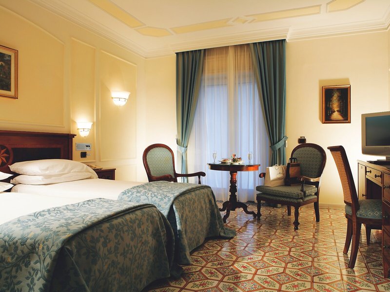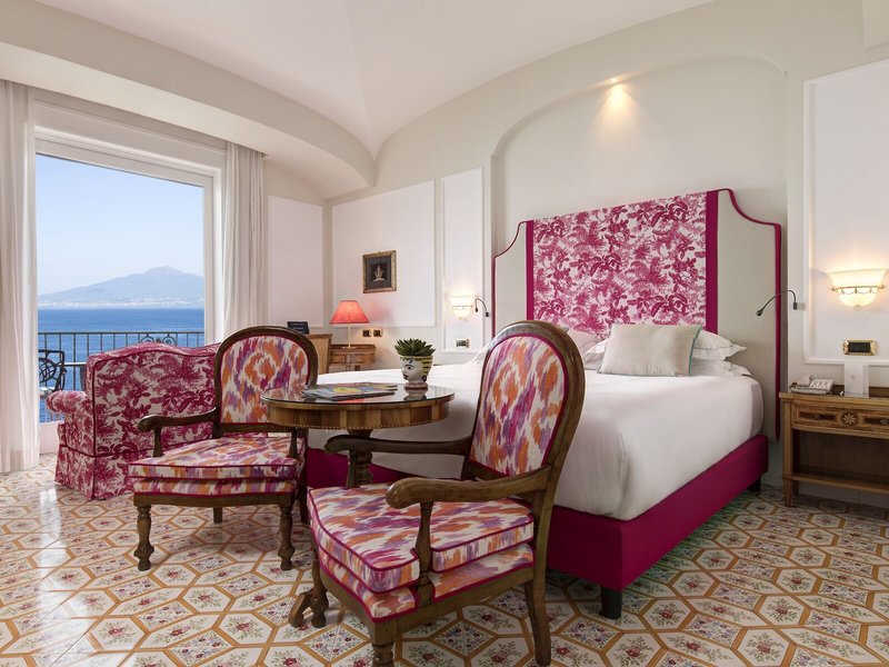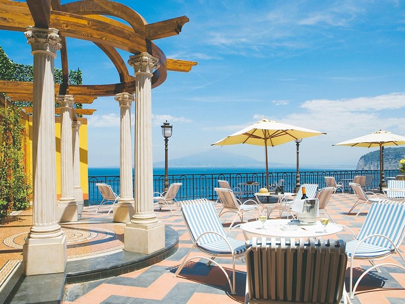Poloha a okolie Tento elegantný a sofistikovaný luxusný hotel sa nachádza v srdci mesta Sorrento. Nachádza sa na útese nad morom a ponúka výhľad na Neapolský záliv a Vezuv. Leží vo veľkom starobylom parku so zmesou exotických rastlín, nádherných kamélií a pomarančovníkov a citrónovníkov. Reštaurácie, bary, nočný klub a spojenie s verejnou dopravou nájdete približne 50 m od hotela. Turistické centrum Sorrenta je vzdialené asi 100 m. Na Capri je to asi 25 minút, do Pompejí asi 35 minút, do Herculanea asi 45 minút a do Neapola asi 1 hodinu. Letisko Neapol je vzdialené približne 44 km.