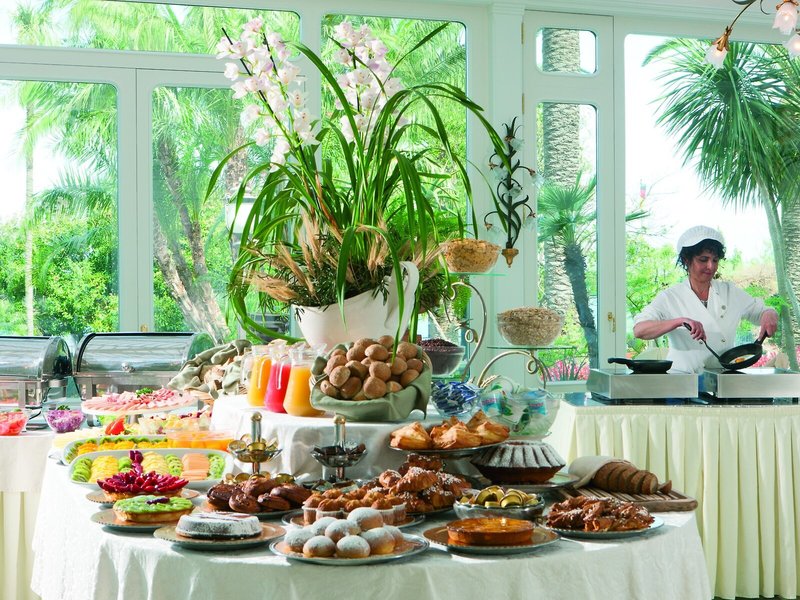 Essen & Trinken: Die gastronomischen Einrichtungen umfassen einen Speiseraum, einen Frühstückssaal, ein Café und eine Bar. Die Gäste werden kulinarisch verwöhnt im Nichtraucherrestaurant mit Klimaanlage und Kinderhochstühlen. Erfrischende Drinks an der Strandbar sorgen für Wohlfühlmomente. Die Unterbringung bietet als buchbare Verpflegungsleistungen Übernachtung inkl. Frühstück und Halbpension. Ein kontinentales Buffetfrühstück garantiert einen guten Start in den Tag. Mittags und abends gibt es die Wahl zwischen Buffet, à la carte und Menü. Diätgerichte, glutenfreie Mahlzeiten und vegetarische Gerichte werden auf Wunsch zubereitet. Darüber hinaus stellt das Haus spezielle Verpflegungsangebote bereit.