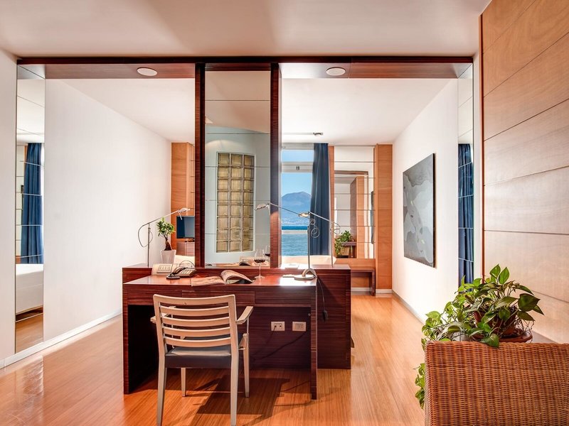 - Dvojlôžková izba Superior s výhľadom na more (DZM8), dvojlôžková izba, nefajčiarska izba, minimálny vek v izbe: 18 rokov, v hlavnej budove, morská strana, výhľad na more, cca 18 - 22 m², celkový počet izieb v tejto typ izby: 1, rozloženie: 1 spálňa, Detská postieľka, klimatizácia: zadarmo, centrálne ovládané, kúrenie: centrálne ovládané, podlaha: parkety, trezor: zdarma, pohovka, písací stôl, žehlička, žehliaca doska, chladnička , príslušenstvo na prípravu kávy/čaju, minibar: voda, telefón, internet: WLAN/WiFi: bez poplatku, televízia: satelitná TV, izbová služba, upratovacia služba, vaňa alebo sprcha, WC, sušič vlasov, kozmetické zrkadlo, balkón alebo terasa