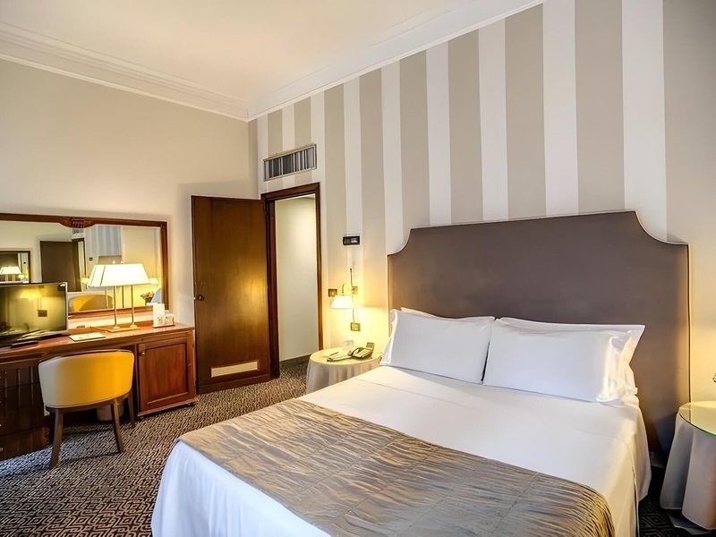 So wohnen Sie: Für angenehmes Raumklima in den Zimmern sorgen eine Klimaanlage und eine Heizung. Gemütlich schlafen können die Gäste auf einem Doppelbett. Zustellbetten können angefordert werden. Außerdem sind ein Safe, eine Minibar und ein Schreibtisch verfügbar. Ein Kühlschrank und ein Minikühlschrank zählen ebenfalls zur Standardeinrichtung. Darüber hinaus gibt es ein Bügelset und eine Hosenpresse. Besten Urlaubskomfort bieten ein Telefon mit Direktwahl, Sat-TV, ein Radio und WiFi. Die Badezimmer sind ausgestattet mit einer Dusche, einer Badewanne und einem Bidet. Für den täglichen Gebrauch stehen ein Haartrockner und ein Telefon zur Verfügung. Buchbar sind rollstuhlgerechte Zimmer. Das Hotel bietet Familien-, Nichtraucher- und Raucherzimmer.