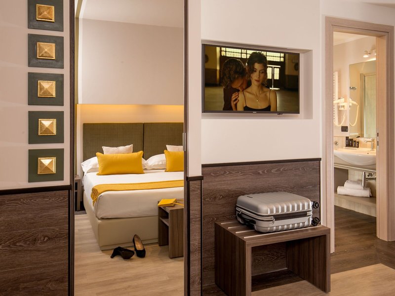 Takto sa ubytujete: Klimatizácia a kúrenie zabezpečujú príjemnú vnútornú klímu v izbách. Izby majú manželskú posteľ, manželskú posteľ, manželskú posteľ alebo rozkladaciu pohovku. Prístelky je možné vyžiadať. K dispozícii je aj trezor, minibar a pracovný stôl. K štandardnému vybaveniu patrí aj kuchynka s chladničkou, mikrovlnnou rúrou a umývačkou riadu. Telefón, TV so satelitným/káblovým príjmom a WiFi (zdarma) ponúkajú najlepší dovolenkový komfort. K vybaveniu izieb patria papuče. Kúpeľne sú vybavené sprchovacím kútom, vaňou a bidetom. Ako ďalšie pohodlie je k dispozícii sušič vlasov. Ako zvláštnosť si hostia môžu vychutnať kozmetické produkty v kúpeľniach. K dispozícii sú aj bezbariérové izby s bezbariérovými kúpeľňami. Hotel ponúka rodinné a nefajčiarske izby.