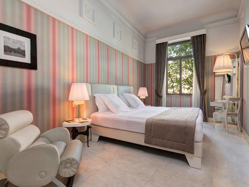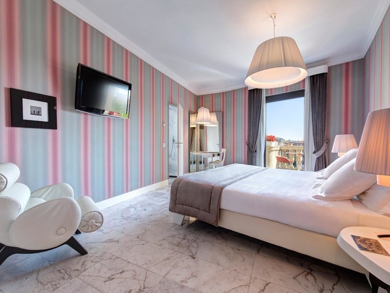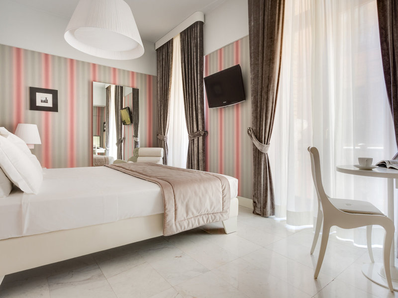 - Deluxe Executive (DZX3), dvojlôžková izba, v hlavnej budove, výhľad na mesto, výhľad na Via Veneto, cca 25 - 30 m², posledná kompletná rekonštrukcia v roku 2011, celkový počet izieb v tomto type izby: 1, rozloženie: 1 spálňa, 1 manželská posteľ, klimatizácia: zadarmo, individuálne nastaviteľná, studená, teplá, kúrenie: individuálne nastaviteľná, podlahové kúrenie, podlaha: dlažba, laminát, parkety, trezor: zadarmo, pohovka, písací stôl, žehlička , žehliaca doska, sušička bielizne, minibar: za príplatok, platba v hotovosti, nealko nápoje: za poplatok, platba v hotovosti, voda: za poplatok, platba v hotovosti, alkoholické nápoje: za poplatok, platba v hotovosti, občerstvenie: za poplatok, platba v hotovosti, dopĺňanie minibaru: denne, telefón, Internet: WLAN/WiFi: bez poplatku, televízor: plochá obrazovka, izbová služba: za poplatok, platba v hotovosti, upratovacia služba: bez poplatku, denná tlač: splatný, platba v hotovosti, vaňa resp. sprcha, sprcha, vaňa, balkón alebo terasa: s ležadlami, s posedením