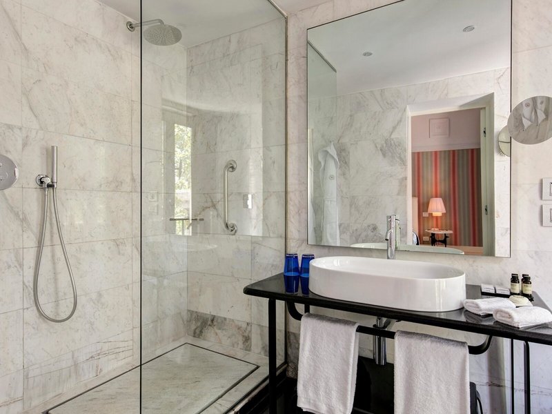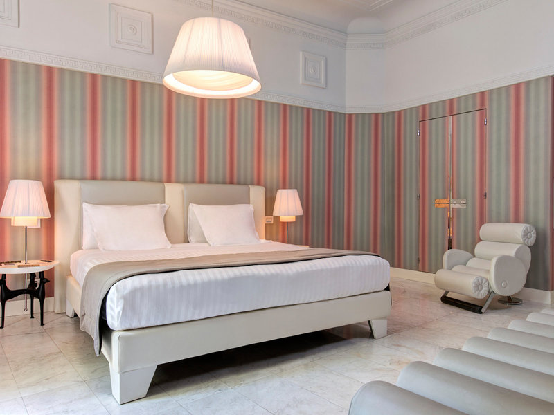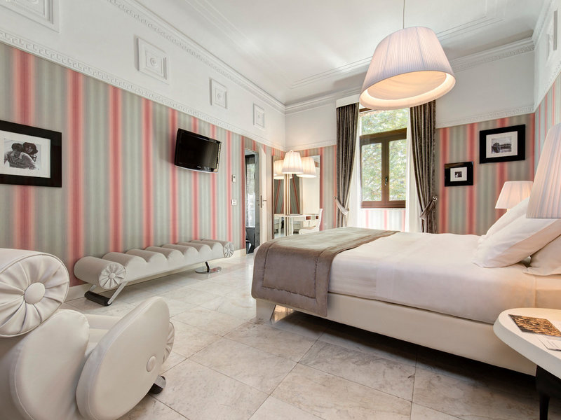 - Suita Junior (JSX1), suita Junior, v hlavnej budove, výhľad na mesto, výhľad na Via Veneto, cca 40 m², posledná kompletná rekonštrukcia v roku 2012, celkový počet izieb v tomto type izby: 1, 1 posteľ king. , klimatizácia: individuálne nastaviteľná, kúrenie: individuálne nastaviteľné, trezor: bez poplatku, pohovka, príslušenstvo na prípravu kávy/čaju, jedálenský stôl, minibar: za poplatok, nealko: za poplatok, voda: za poplatok, alkoholické nápoje: za poplatok, občerstvenie: za poplatok, dopĺňanie zásob minibaru: denne, telefón, internet : WLAN/WiFi: zadarmo, televízia, izbová služba: 24 hodín, príplatok, upratovacia služba, vaňa alebo sprcha, WC, papuče, fén