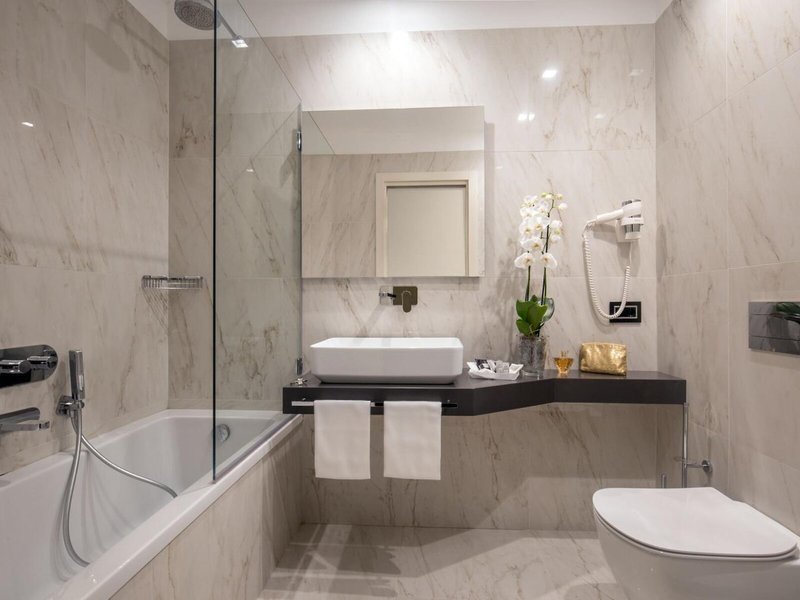 So wohnen Sie: Für angenehmes Raumklima in den Zimmern sorgen eine Klimaanlage und eine Heizung. Die Zimmer verfügen über ein Doppelbett und ein Sofabett. Zustellbetten können angefordert werden. Außerdem sind ein Safe, eine Minibar und ein Schreibtisch verfügbar. Ein Kühlschrank zählt ebenfalls zur Standardeinrichtung. Ein Bügelset ist für den zusätzlichen Komfort der Gäste verfügbar. Darüber hinaus sind ein Telefon mit Direktwahl, Sat-TV und WiFi (ohne Gebühr) vorhanden. Die Badezimmer sind ausgestattet mit einer Dusche, einer Badewanne und einem Bidet. Ein Haartrockner und ein Telefon stehen für den Gebrauch zur Verfügung. Als Besonderheit genießen die Gäste in den Badezimmern Kosmetikartikel und eine Auswahl an Handtüchern. Es sind auch rollstuhlgerechte Zimmer mit barrierefreiem Bad verfügbar. Das Haus bietet Familien- und Nichtraucherzimmer.