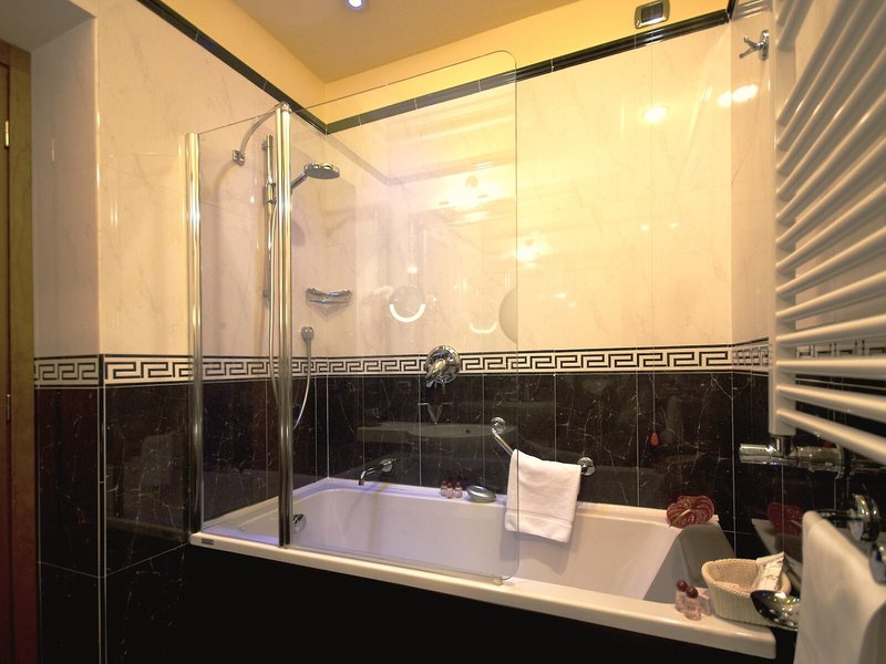 Ako sa ubytujete: Izby majú klimatizáciu, kúrenie a ventilátor. Izby majú posteľ veľkosti queen a rozkladaciu pohovku. Prístelky je možné vyžiadať. K dispozícii je aj trezor, minibar a pracovný stôl. Štandardom je aj chladnička. Pre väčšie pohodlie hostí je k dispozícii lis na nohavice. K dispozícii je aj telefón, satelitná TV, rádio, zásuvkový adaptér, budík a WiFi (zdarma). K vybaveniu izieb patria papuče a denná tlač. Kúpeľne sú vybavené sprchovacím kútom, vaňou, vírivkou a bidetom. K dispozícii je sušič vlasov, župany a telefón. Ako zvláštnosť si hostia môžu vychutnať kozmetické produkty a výber uterákov v kúpeľniach. Dom ponúka rodinné a nefajčiarske izby.