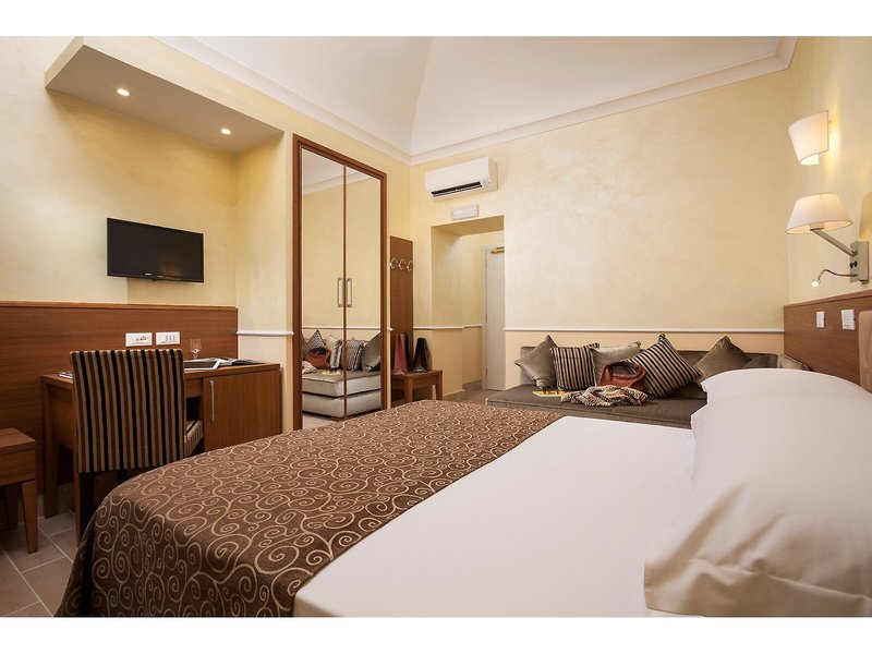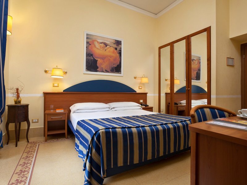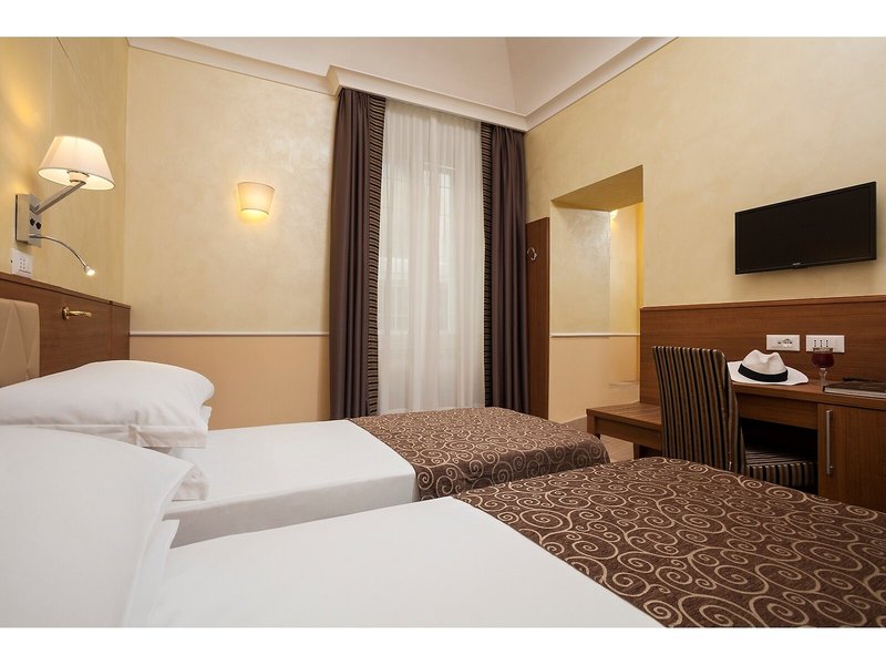 Poloha a okolie: Tento mestský hotel sa nachádza medzi železničnou stanicou Roma Termini a bazilikou Santa Maria Maggiore. Diokleciánove kúpele, Národné rímske múzeum, Opera a Via Nazionale sú vzdialené 5 minút chôdze. Koloseum a Rímske fórum sú vzdialené približne 10 minút chôdze. Kvirinálsky palác, Španielske schody a Fontána di Trevi sú vzdialené približne 15 minút chôdze. Hlavné autobusové linky a metro sa nachádzajú priamo oproti železničnej stanici Termini, približne 150 metrov od hotela. V bezprostrednej blízkosti hotela sa nachádzajú aj reštaurácie, bary a obchody. Rímske letiská Ciampino a Fiumicino sú vzdialené približne 15, respektíve 25 kilometrov.