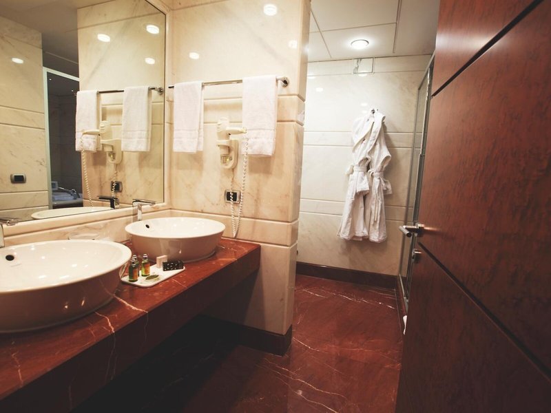 Vaše ubytovanie: Klimatizácia a kúrenie zabezpečujú príjemnú vnútornú klímu v izbách. Izby sú vybavené posteľou queen a rozkladacou pohovkou. Prístelky je možné vyžiadať. K dispozícii je aj trezor, minibar a písací stôl. K dispozícii je aj chladnička a minichladnička. Pre pohodlie hostí je k dispozícii lis na nohavice. Okrem toho je tu telefón, satelitná TV, rádio a WiFi (zdarma). V kúpeľni so sprchovacím kútom a vaňou máte k dispozícii sušič vlasov a telefón. Kozmetické výrobky poskytujú extra pohodlie v kúpeľniach. Je možné si zarezervovať bezbariérové izby. Hotel ponúka rodinné a nefajčiarske izby.