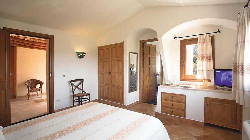 Durch die Hanglage bietet sich Ihnen ein fantastisches Panorama über die Umgebung bis hin zum Meer, von den 35 Gästezimmern im rustikal-sardischen Stil blicken Sie auf das Dorf oder das Tal. Ein Shuttlebus-Service zum Strand wird ebenfalls angeboten. Um sich aber wirklich unabhängig fortbewegen zu können, ist ein Mietwagen erforderlich!