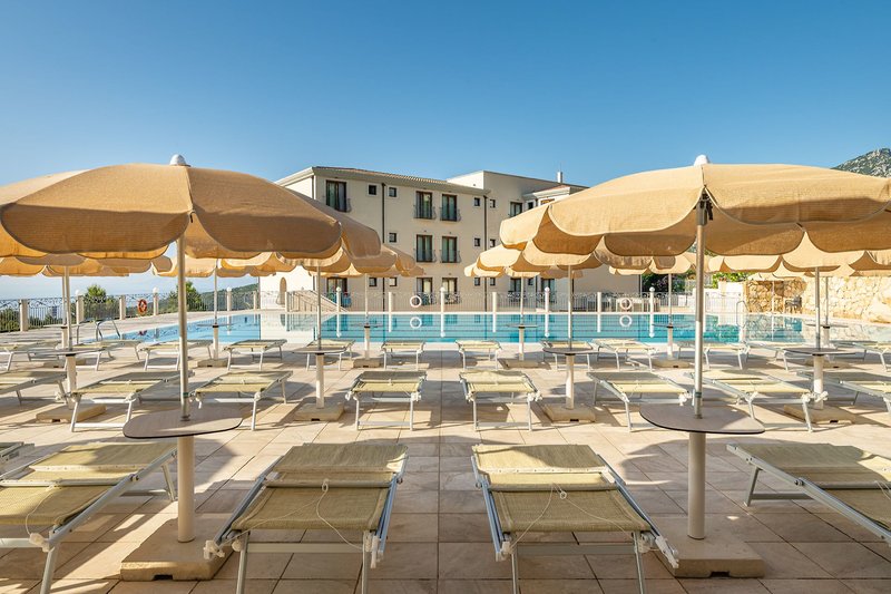 Vybavenie: Tento pôvabný rodinný hotel má 65 izieb rozmiestnených na 3 poschodiach. K vybaveniu patrí 24-hodinová recepcia so službami concierge, vstupná hala, výťah, bezplatné Wi-Fi, úschovňa batožiny, kyvadlový autobus na pláž (cestovný poriadok je k dispozícii na recepcii) a reštaurácia (La Terrazza). V dobre udržiavanom areáli sa nachádza slnečná terasa s bazénom, ležadlami, slnečníkmi, uterákmi (v cene) a barom pri bazéne.