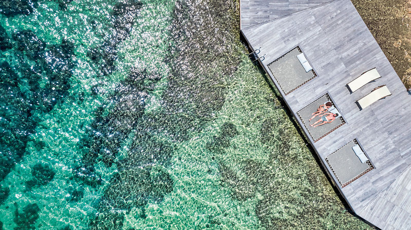 - Terasa na opaľovanie, priamo pri mori, slnečníky (za poplatok), lehátka (za poplatok)