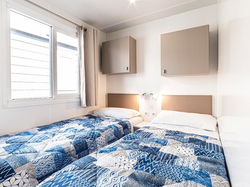 - Mobile Home Baia Revolution (MHX6), Mobile Home, Parkseite, Gartenblick, ca. 32 m², Gesamtanzahl der Räume in diesem Zimmertyp: 4, Aufteilung wie folgt: 3 Schlafzimmer, 4 Einzelbetten, 1 Doppelbett, Klimaanlage: Barzahlung, pro Tag ca. 8 EUR, individuell regelbar, kalt, warm, Fußboden: PVC, Kochnische, Kühlschrank, Fernseher: im Wohnbereich, Dusche, WC, Terrasse: mit Sitzgelegenheit