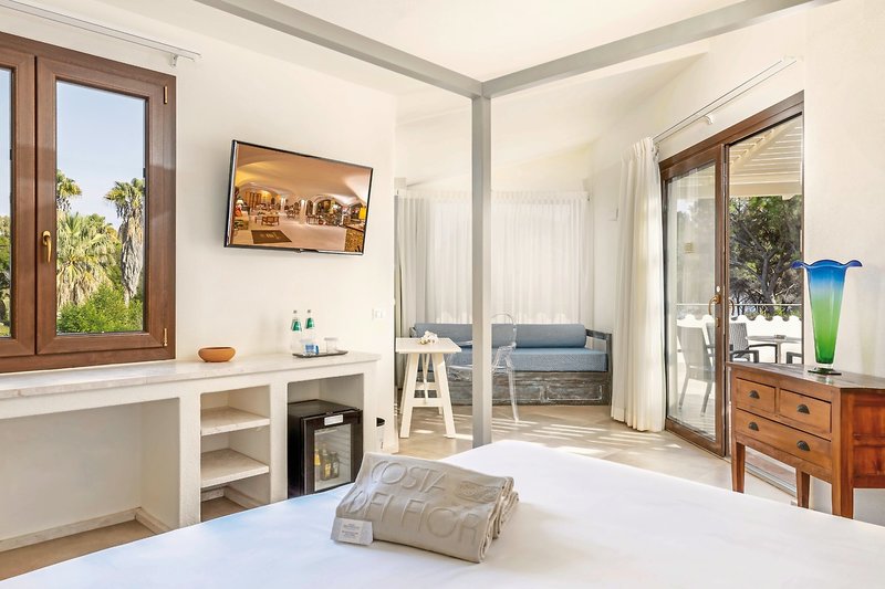 - Suite, Gartenblick, 1 Bad, Dusche, WC, Bademantel, Badeslipper, Haartrockner, Klimaanlage, Minibar kostenpflichtig, Safe, 1 TV (Sat-TV), WLAN, Wasserkocher, Balkon oder Terrasse