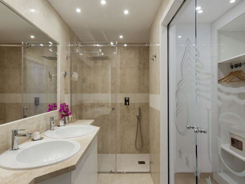 - Suita s výhľadom na more a súkromnou terasou (SUM1), suita, nefajčiarska izba, v hlavnej budove, výhľad na more, výhľad na mesto, cca 45 m², posledná kompletná rekonštrukcia v roku 2019, celkový počet izieb v tomto type izby: 2, rozloženie: kombinovaná obývačka/spálňa, 1 spálňa, 1 posteľ king, 1 rozkladacia pohovka (160x180cm), detská postieľka: zadarmo, klimatizácia: zadarmo, individuálne nastaviteľná, studená, teplá, kúrenie: individuálne nastaviteľná , podlahové kúrenie, podlaha: dlažba, trezor: zadarmo, pohovka, písací stôl, Rýchlovarná kanvica, minibar: za poplatok, nealko nápoje: za poplatok, voda: za poplatok, alkoholické nápoje: za poplatok, občerstvenie: za za poplatok, dopĺňanie minibaru: denne, telefón, Internet: WLAN/WiFi: bez poplatku, televízia: v obývacej časti, v spálni, programy SKY, izbová služba: za poplatok, upratovanie: denne, bez poplatku, sprcha, samostatná sprcha, samostatné WC, župan: bez poplatku, papuče: bez poplatku, 2 kúpeľne, fén, kozmetické zrkadlo, terasa: strešná terasa, s ležadlami, s posedením, s vírivkou