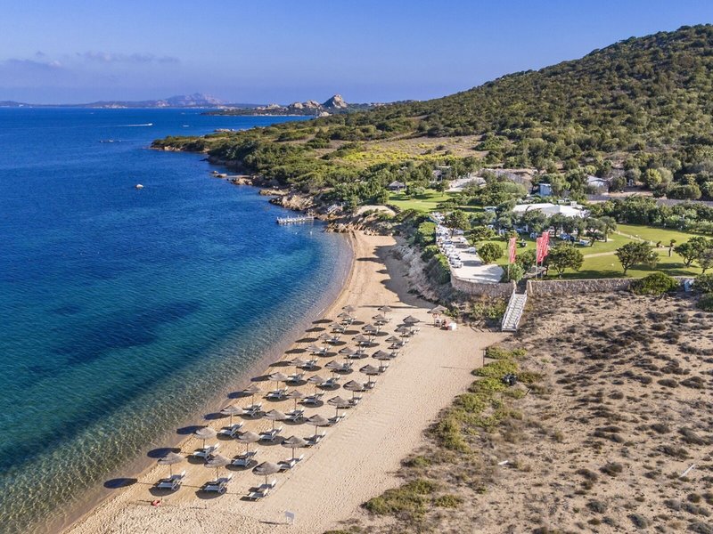 Lage & Umgebung Das Hotel liegt nur wenige Schritte vom malerischen Baja Sardinia und etwa 800 m vom Strand entfernt. Nach nur ca. 3 km kann Poltu Quatu erreicht werden, nach etwa 6 km Porto Cervo und nach rund 13 km Nuraghes. Der Flughafen Olbia liegt ca. 35 km entfernt. Aufgrund der Lage des Hotels ist ein Mietwagen empfehlenswert.