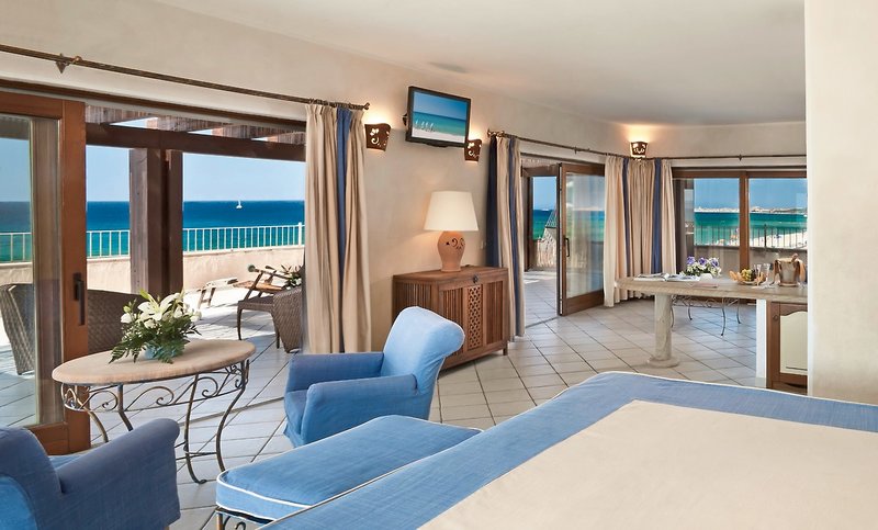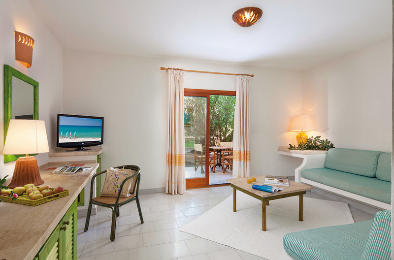 - Suite, 1 separates Schlafzimmer, 1 separater Wohnraum, Doppelbett, mit 2 gemauerten Schlafsofas oder 2 Schlafsessel, 1 Bad, Dusche, 1 WC, Haartrockner, Klimaanlage, Minibar kostenpflichtig, Safe, 2 TVs, Balkon oder Terrasse (möbliert)