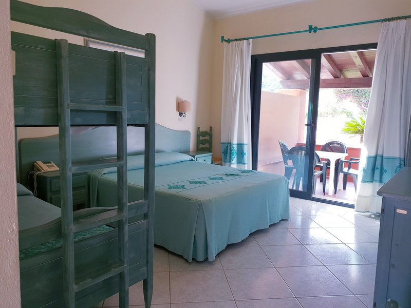 - Classic Garden View (DZY1), Bungalow, Nichtraucherzimmer, zum Innenhof gelegen, Gartenseite, Gartenblick, ca. 18 - 25 m², Gesamtanzahl der Räume in diesem Zimmertyp: 1, 1 Doppelbett (160x190cm), 2 Zustellbetten (90x190cm), Babybett: ohne Gebühr, Anfrage & Reservierung notwendig, 1 Etagenbett (90x190cm), Klimaanlage: ohne Gebühr, Mai - September, individuell regelbar, kalt, Fußboden: Fliesenboden, Safe: ohne Gebühr, Minibar: gegen Gebühr, Telefon, Internet: WLAN/WiFi, Fernseher: Flatscreen, im Schlafzimmer, Sat-TV, Dusche, WC, Föhn, Balkon oder Terrasse: mit Sitzgelegenheit, Terrasse: mit Sitzgelegenheit