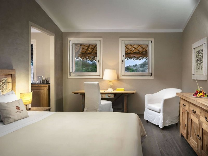 Poloha a okolie: Rezort sa nachádza v nedotknutej prírode vo vysoko položenom údolí Buddeo, medzi obrovskými útesmi a olivovým hájom. Na úpätí týčiacich sa žulových hôr ponúka úžasný panoramatický výhľad na záliv Arzachena a ostrovy Caprera, Maddalena a Korzika. Malebná dedinka San Pantaleo s trhom je vzdialená 2 km (z toho 2 km po nespevnenej ceste). Porto Cervo je vzdialené približne 10 km.