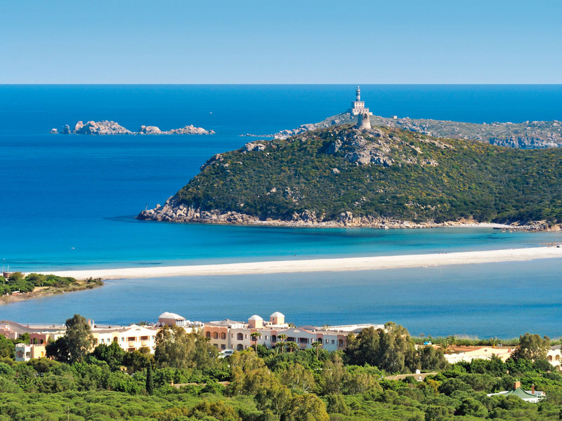 Poloha a okolie: Tento vkusne zariadený a moderný rezort sa nachádza uprostred rozsiahlej prírodnej rezervácie a od mora ho oddeľuje krištáľovo čisté jazero so slanou vodou. Pláž je vzdialená len pár minút chôdze (cca 500 m). Villasimius je vzdialený približne 2 km (kyvadlová doprava je k dispozícii v určitých časoch).