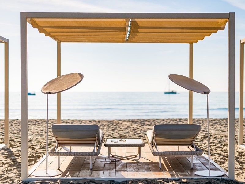 - Liegen/Sonnenschirme am Strand gegen Gebühr (1. + 2. Reihe gegen Gebühr, ab der 3. Reihe kostenlos)