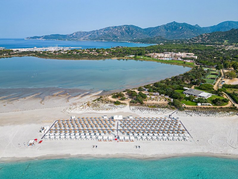 Poloha a okolie: Tento vkusne zariadený a moderný rezort sa nachádza uprostred rozsiahlej prírodnej rezervácie a od mora ho oddeľuje krištáľovo čisté jazero so slanou vodou. Pláž je vzdialená len pár minút chôdze (cca 500 m). Villasimius je vzdialený približne 2 km (kyvadlová doprava je k dispozícii v určitých časoch).