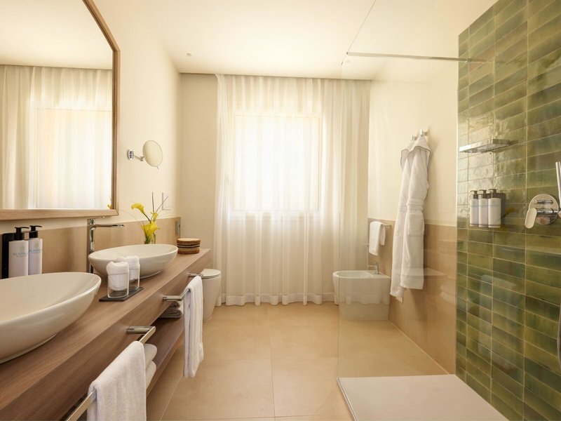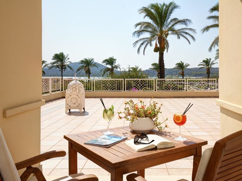 - Junior Suite Bay Side (JSX2), Juniorsuite, im Hauptgebäude, Meerseite, Lagunenblick, Buchtblick, ca. 30 - 35 m², letzte Komplettrenovierung 2024, Gesamtanzahl der Räume in diesem Zimmertyp: 1, Aufteilung wie folgt: 1 Schlafzimmer, Babybett: ohne Gebühr, Anfrage nicht notwendig, Reservierung notwendig, Klimaanlage: ohne Gebühr, individuell regelbar, kalt, Fußboden: Fliesenboden, Safe: ohne Gebühr, Sofa, Schreibtisch, Minibar: gegen Gebühr, Softdrinks: gegen Gebühr, Wasser: gegen Gebühr, alkoholische Getränke: gegen Gebühr, Snacks: gegen Gebühr, Minibarauffüllung: täglich, Telefon, Internet: WLAN/WiFi: ohne Gebühr, Fernseher: Flatscreen, Sat-TV, SKY-Programme, iPod-Docking Station, Roomservice: täglich 07:00 Uhr - 01:00 Uhr, gegen Gebühr, Dusche, WC, Bademantel: ohne Gebühr, Slipper: ohne Gebühr, Föhn, Balkon: mit Sitzgelegenheit
