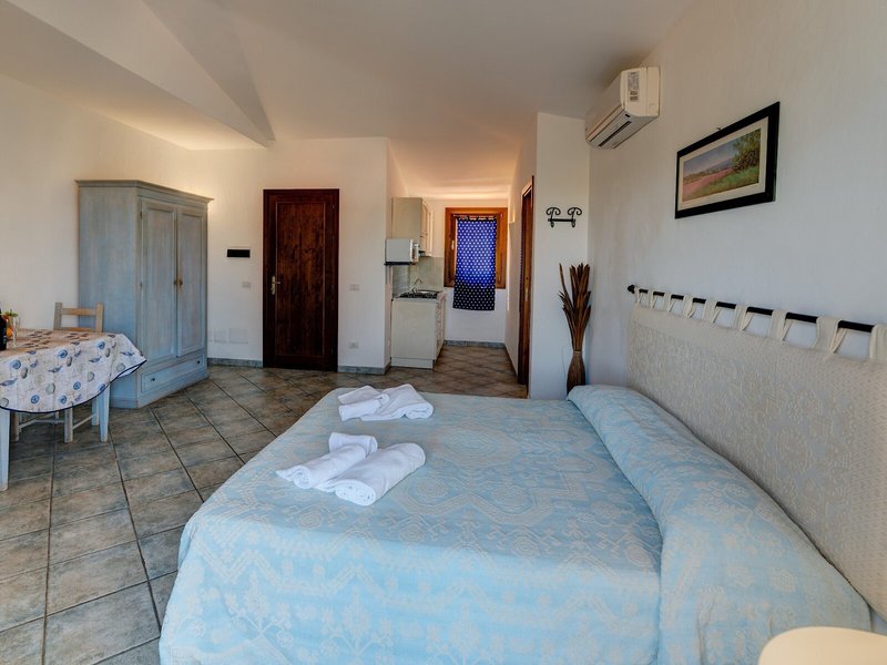 Takto sa ubytujete: Klimatizácia zabezpečuje príjemnú vnútornú klímu v izbách. Balkón je štandardom vo väčšine izieb. Izby majú manželskú posteľ a rozkladaciu pohovku. Prístelky je možné vyžiadať. K dispozícii je mini bar. Kuchynka je dobre vybavená pre vlastné stravovanie s chladničkou, mikrovlnnou rúrou, zariadením na prípravu čaju/kávy a rúrou. Pre väčšie pohodlie hostí je k dispozícii súprava na žehlenie. K dispozícii je aj telefón, satelitná TV a WiFi. Súčasťou ponuky služieb je aj záverečné upratovanie. Kúpeľňa je vybavená sprchovacím kútom a vaňou a sušičom vlasov. Pre rodičov s deťmi sú k dispozícii rodinné izby.