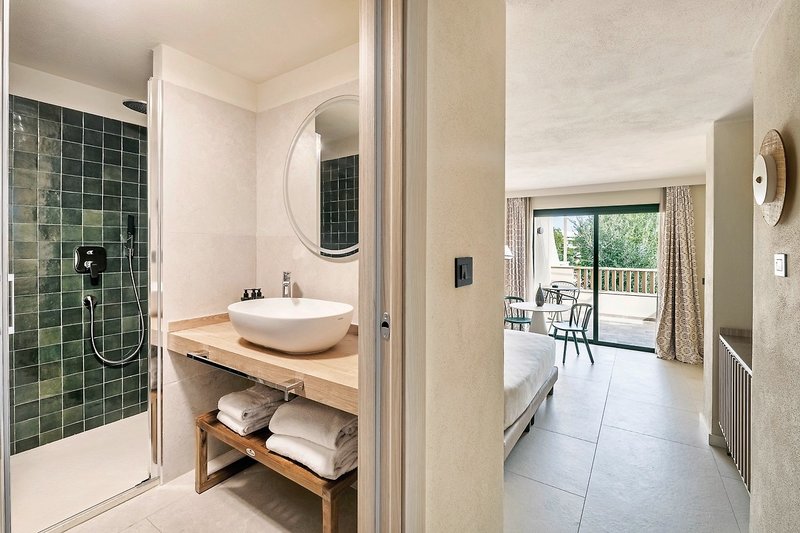 - 46-50 m², Junior Suite, prízemie alebo prvé poschodie, 1 samostatná spálňa, 1 samostatná obývacia izba, rozkladacia pohovka, 2 kúpeľne, sprchovací kút, fén, klimatizácia, trezor, 1 TV (satelitná TV), Wi-Fi, chladnička, balkón alebo terasa, pláž vzdialená cca 500 m