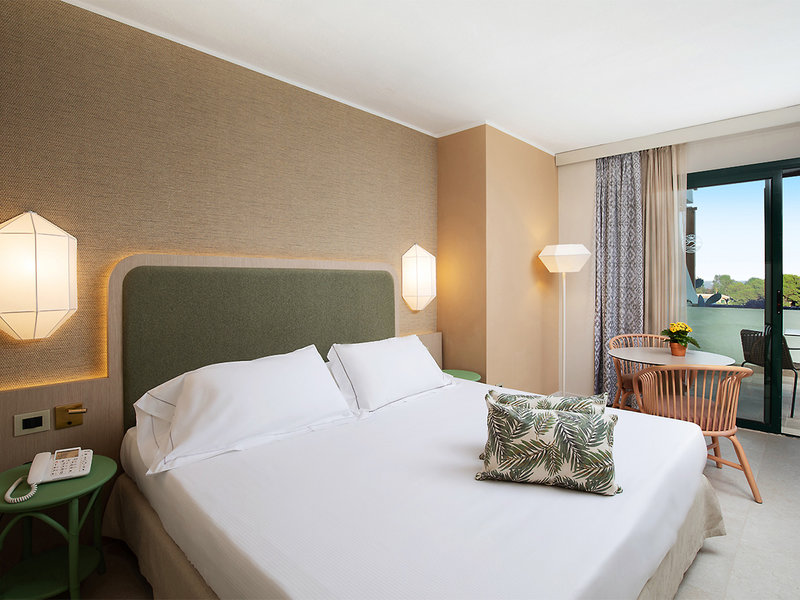 Doppelzimmer Deluxe (DZD, ca. 34 qm, 200- 300 m zum Strand), im 2./3. OG, 2 Einzelbetten, Doppelschlafsofa, Klimaanl., TV, Safe, WLAN, Minibar (geg. Geb.). Dusche, WC, Föhn. Terrasse/Patio. Max. 2E, VOI Tanka Selected Area mit sep. Pool, Spa-/Fitnessbereich, Langschläferfrühstück, inkl. Reserv. im "La Terrazza del Mirto" Restaurant, ausgew. Getränke