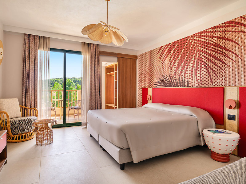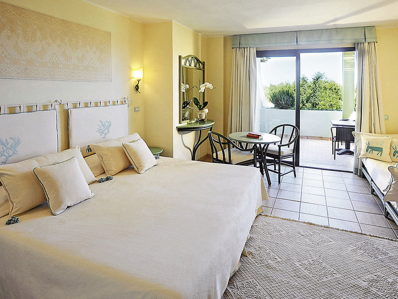 Dvojlôžková izba Deluxe (DZD, cca 34 m², 200 – 300 m od pláže), na 2./3. poschodí, s dvoma samostatnými lôžkami, rozkladacou pohovkou pre dve osoby, klimatizáciou, TV, trezorom, Wi-Fi pripojením a minibarom (za poplatok). Sprcha, WC a sušič vlasov. Terasa/patio. Max. 2 osoby. Vybraná zóna Tanka so samostatným bazénom, wellness/fitness zónou, neskorými raňajkami a rezerváciou v reštaurácii „La Terrazza del Mirto“ sú zahrnuté vybrané nápoje.