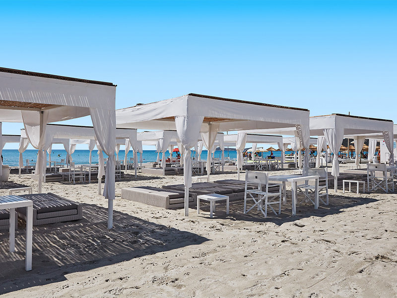 Ausstattung: Weitläufige Familienanlage mit Pool und Sonnenterrasse. Liegen, Schirme am Pool (Badetücher geg. Kaution, Wechsel geg. Geb.). Strandbar, Strandleistungen geg. Gebühr. Empfangsbereich, Rezeption, WLAN (in öffentl. Bereichen), 8 Restaurants, Pizzeria (Reservierung erf.; geg. Geb.), Bars (Hauptrestaurant und Bar ganzjährig geöffnet, restliche Restaurants/Bars nach Ermessen des Hotels), Geschäfte. Parkplätze. Landeskat.: 4 Sterne, 870 Zimmer, 2 Etagen, Lift.